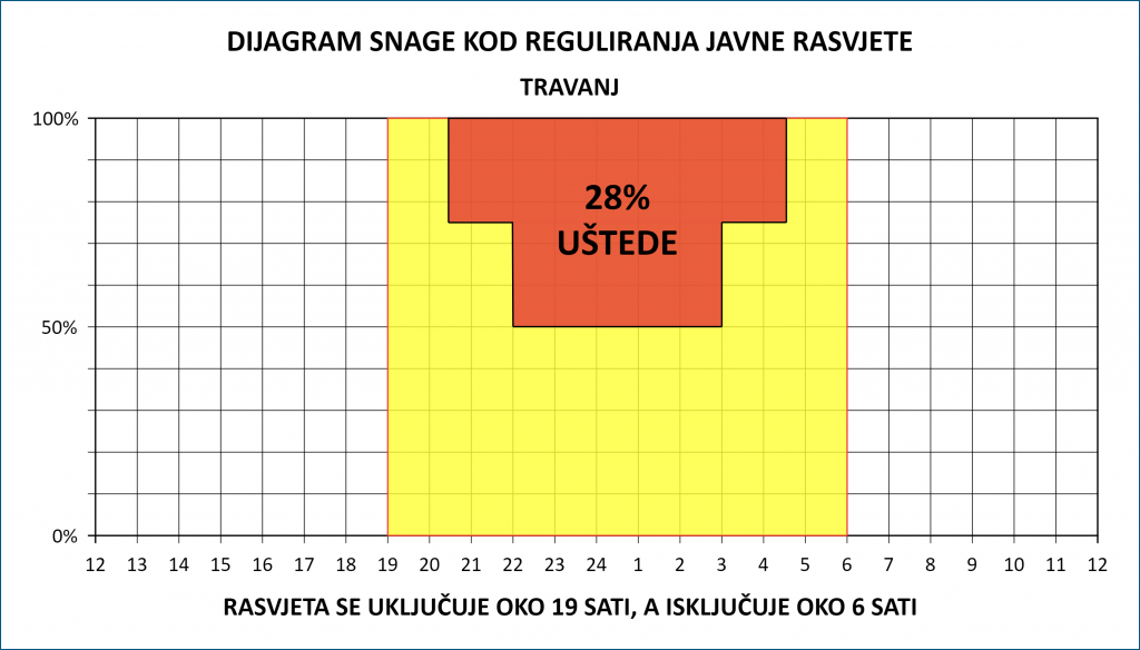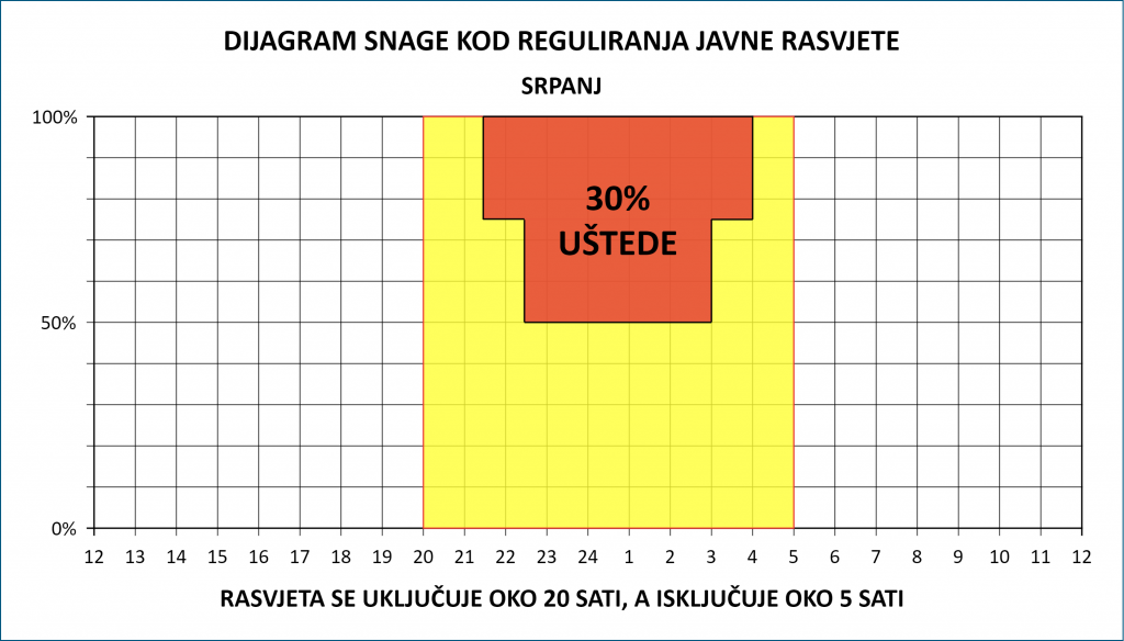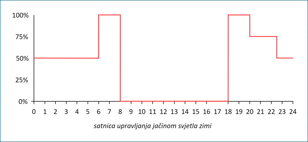 Implementira se regulacija svjetla tijekom noći. Pritom se primjenjuju tri režima regulacije jačine: